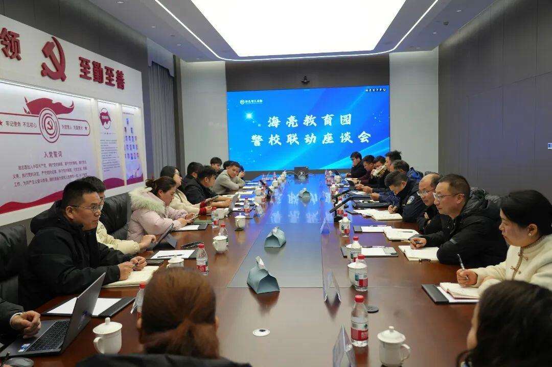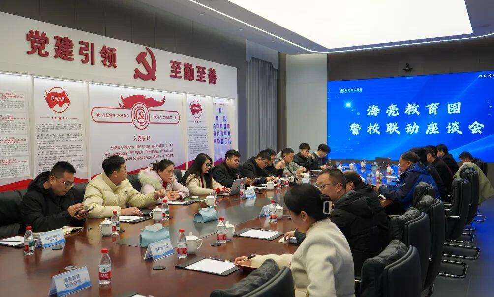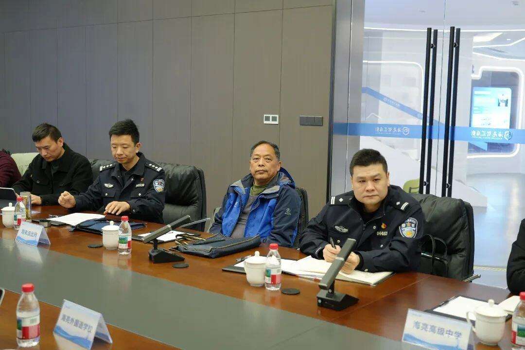 最后,在后勤党建会议室举行了海亮教育园警校联动座谈会。陶朱派出所李海军所长、蔡侃警官、詹悦明主任,以及教育园各校(园)安全分管校长和干部参加了此次座谈会。大家集中讨论了如何有效预防和处理校园内的安全问题,特别是通讯网络诈骗、学生报警行为、校园暴力及欺凌事件等,强调了增强学生和家长对校园110电话的使用意识。同时,会议探讨了建立更有效的内部沟通机制,如一键报警系统、优化监控查询流程等措施,以控制和减少校园内的警情,以及通过建立信任和透明的沟通渠道、沉淀案例交流经验、利用现代技术手段等措施,提高问题处理的高效性,提升学校安全管理水平。