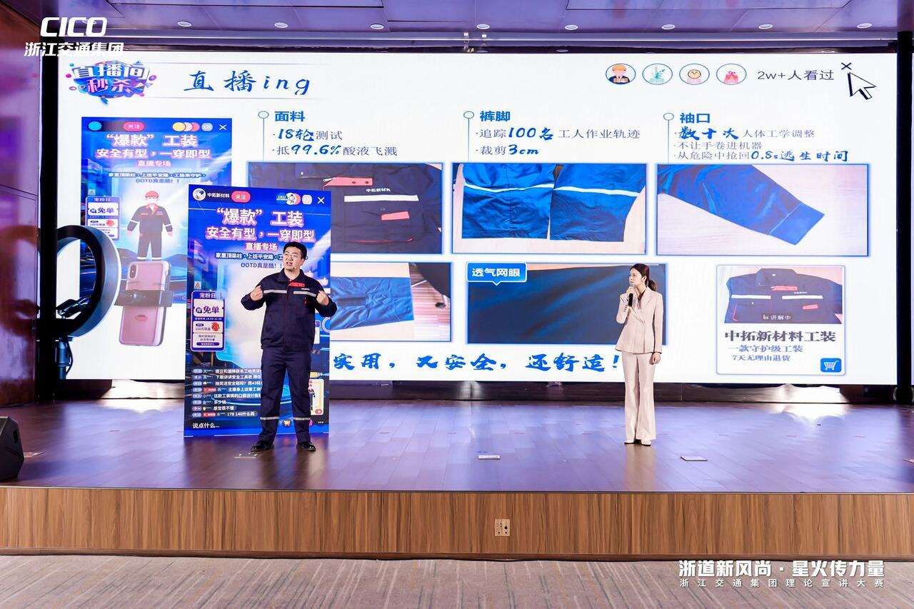 《“爆款”工装》由浙商中拓风控法务部王帆、安全监督管理部张华强创作演绎。该作品以“小切口”折射“大主题”,从一件深蓝色工装出发,通过直播带货的创意形式,体现“润物细无声”的安全理念,连接了企业安全生产的硬核标准与人文关怀的温暖底色。