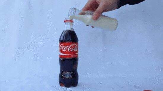 可乐、牛奶,够常见的饮料吧?或许有一种情况,当餐桌上有可乐和牛奶,你会喝了可乐,再喝上一杯牛奶。恩,挺解渴的。但如果你看到下面这个实验,知道它们在你胃里会发生什么,你可能会非常反胃。实验很简单,成分就是可口可乐和牛奶。