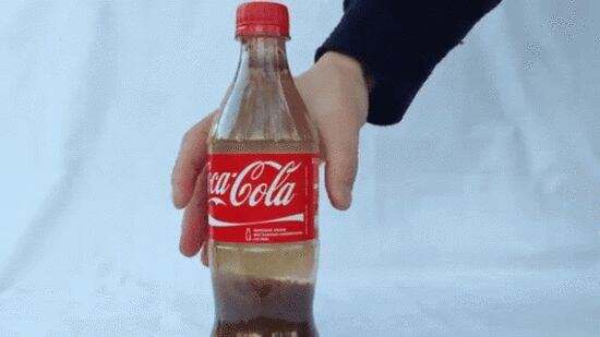 诶油~怎么会是这样!我们看到,瓶中会逐渐形成一个透明地带,可乐颜色越来越淡,并被沉淀到瓶底,而沉淀物越来越多,视觉效果非常……震撼又充满魔性!