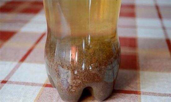 首先,我们将牛奶慢慢倒入可乐瓶中。