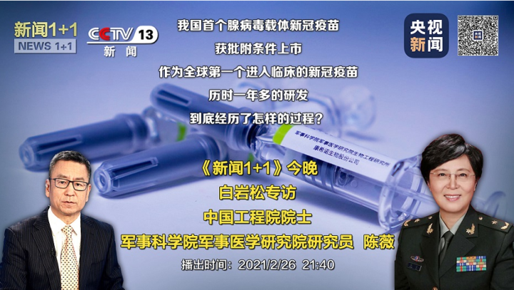 浙江辟谣平台据央视新闻客户端消息 我国首个腺病毒载体新冠疫苗2月25日获批附条件上市,这也是全球第一个进入临床的新冠疫苗,历时一年多的研发。疫苗的安全性怎么样?公众又该如何选择?白岩松新媒体直播节目《白·问》第二期,对话中国工程院院士陈薇,就研发疫苗过程等问题进行分析解答。